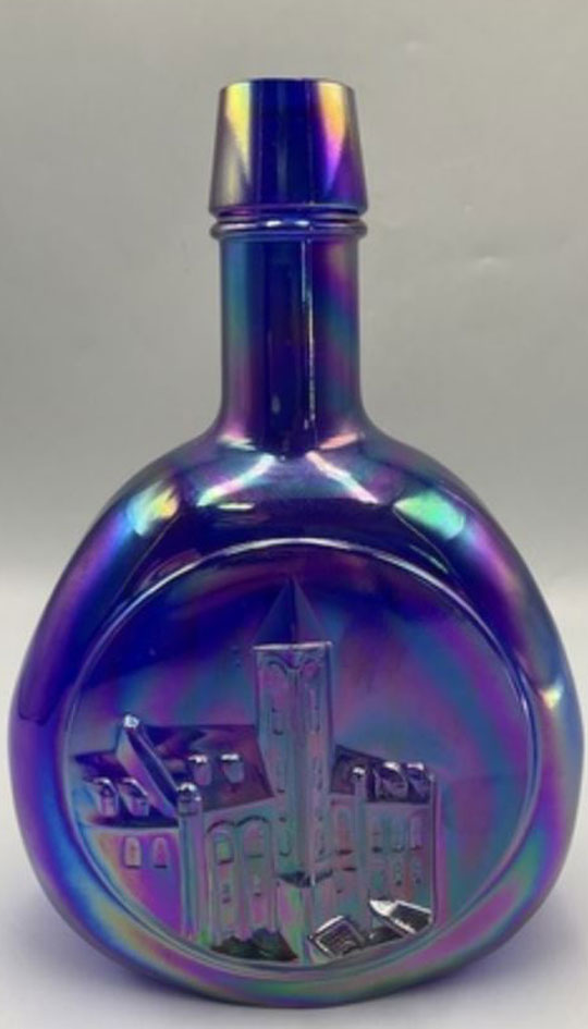 The above bottle was made for ICGA's annual convention souvenir in 1969. The front of the bottle reads "International Carnival Glass Association". The back of the bottle reads "Gateway Arch, Spirit of St. Louis, St. Louis, MO July, 1969". |