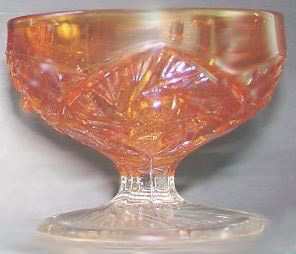 Named for the whirling star and triangular-shaped file segments, the maker of this pattern is unknown although Cambridge, Imperial Glass and U.S. Glass are considered possibilities due to similar patterns made by each.