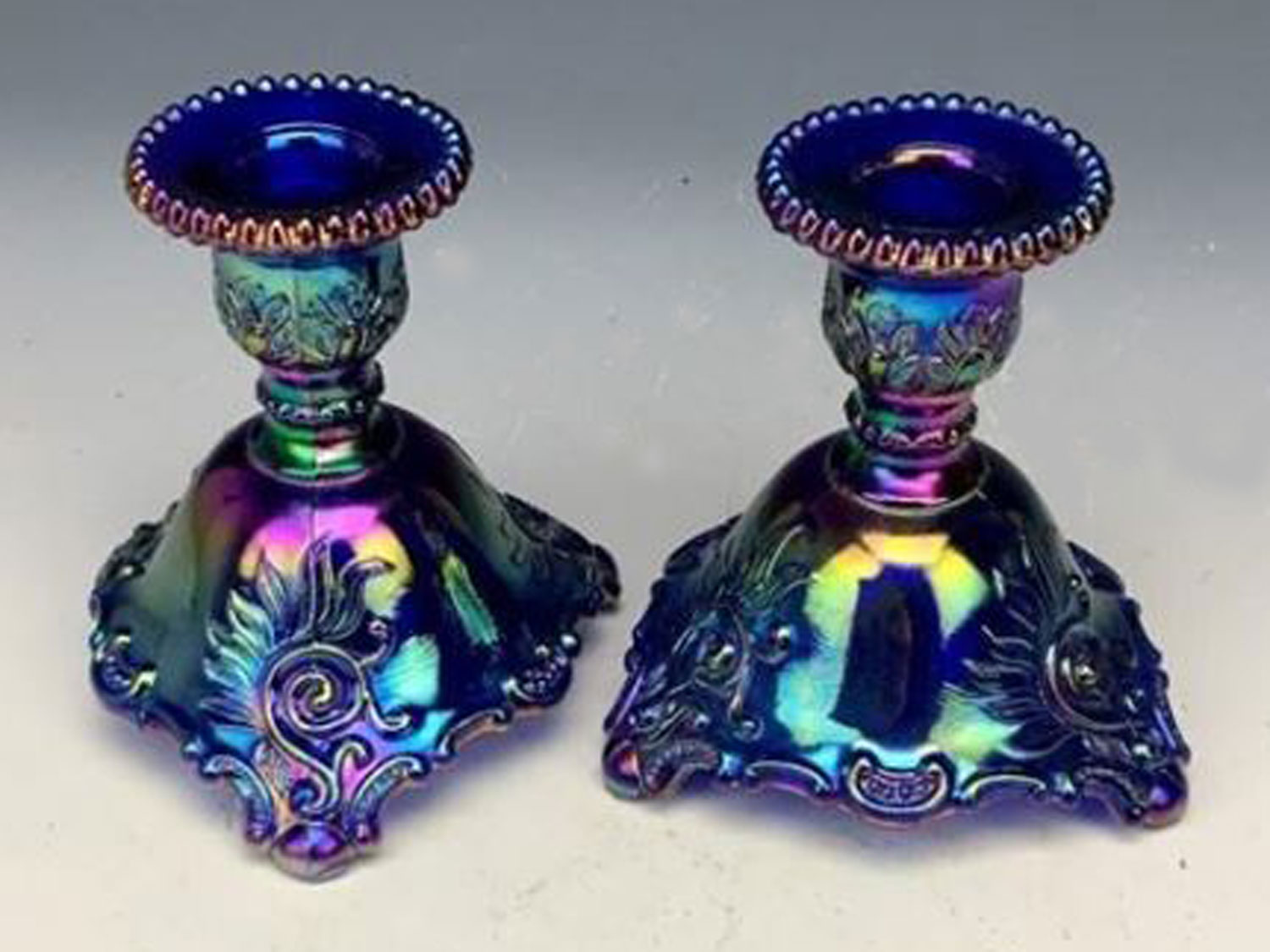 ![]() Fenton Dealer's Meeting - These blue candlesticks were made in a limited edition and handed out at the 2001 Fenton dealers' meeting. These candlesticks were made from molds purchased from Verlys of America. There was a matching bowl made by Verlys. |