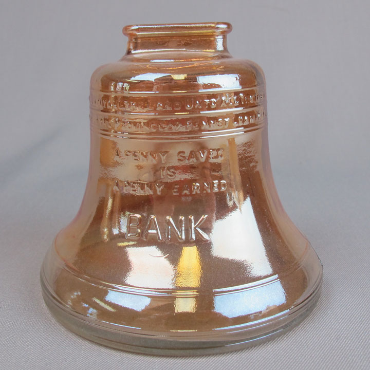 ![]() Liberty Bell - Shaped like the Liberty Bell and say "Liberty Bell Bank". The bank also says "A Penny Saved is a Penny Earned". It is 3 1/2 inches tall and only found in marigold. |