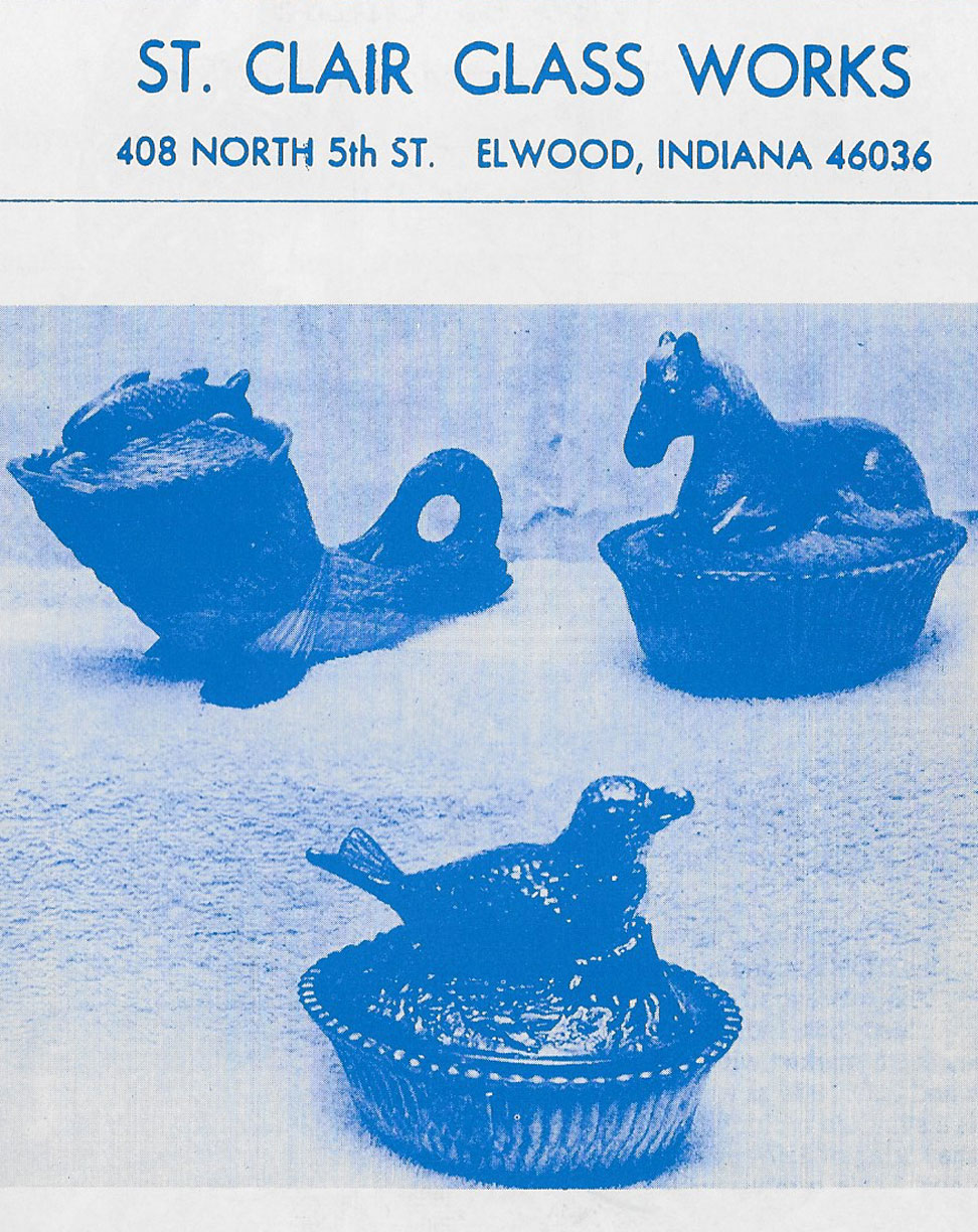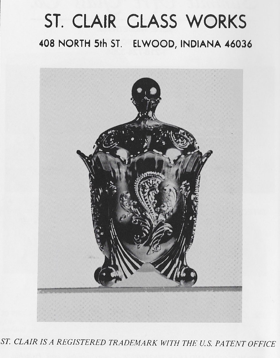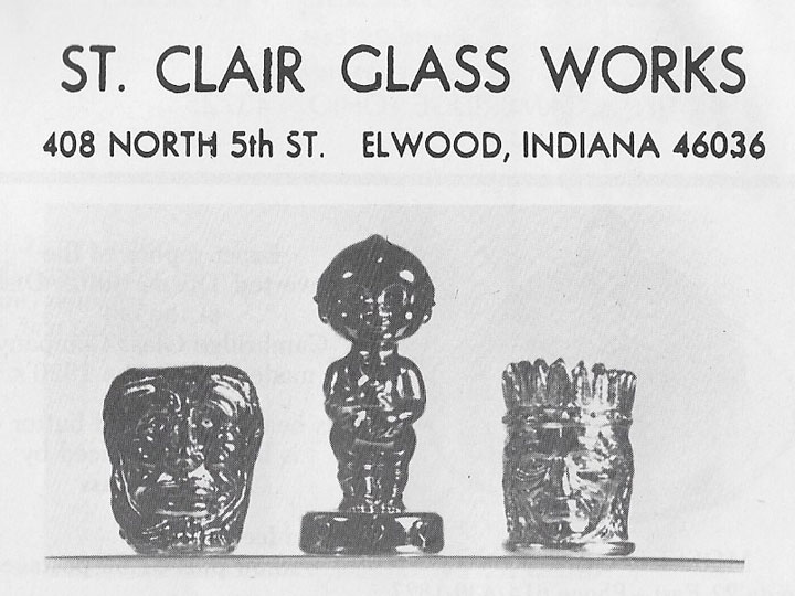 | In the 1940's, Joe and Ellen St. Clair built a small glass factory in the back of the family home on N. Fifth St in Elwood, Indiana. Joe's father, John, remained in charge until his death in 1958. Joe then assumed command of the plant with the help of brothers Ed and Bob. Joe experimented with color and molds. A new larger facility was erected.