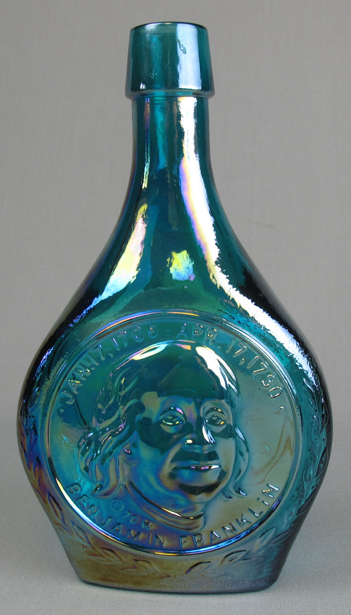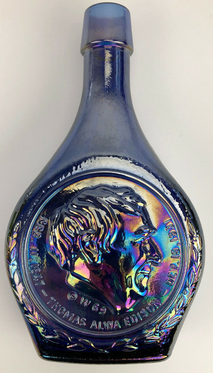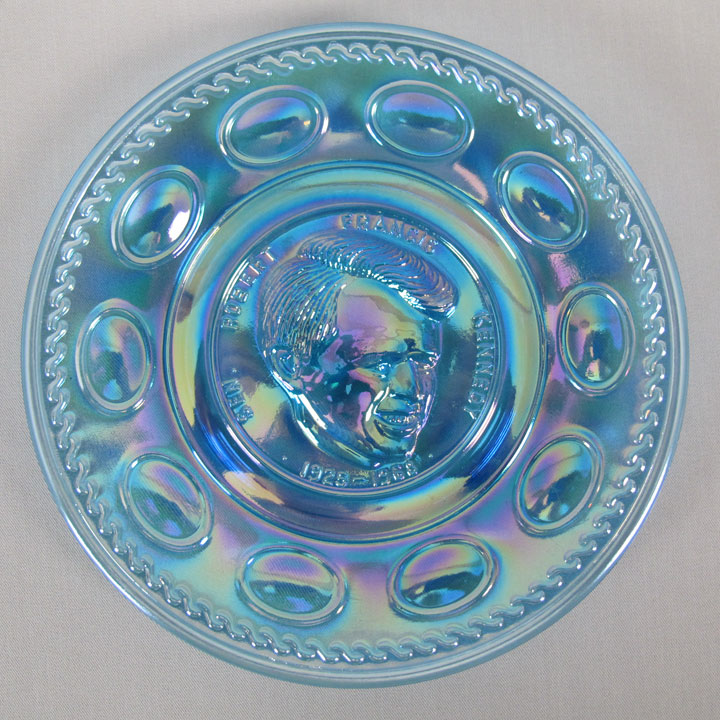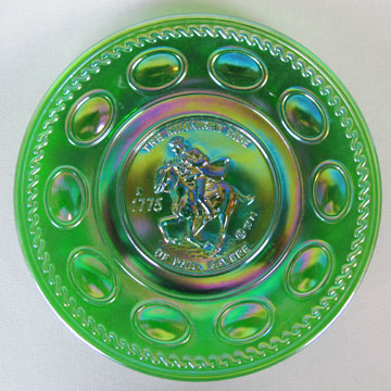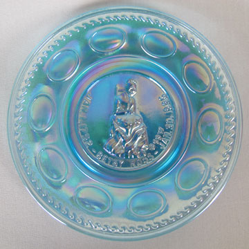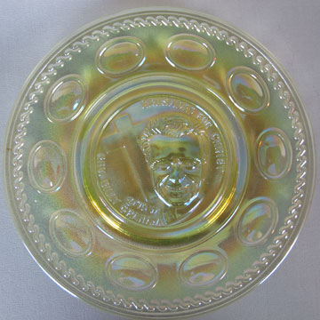 To celebrate Great Americans, Wheaton issued collector plates and bottles for 17 individuals. These eight inch plates can be found in blue carnival, green carnival, yellow carnival and amber carnival.