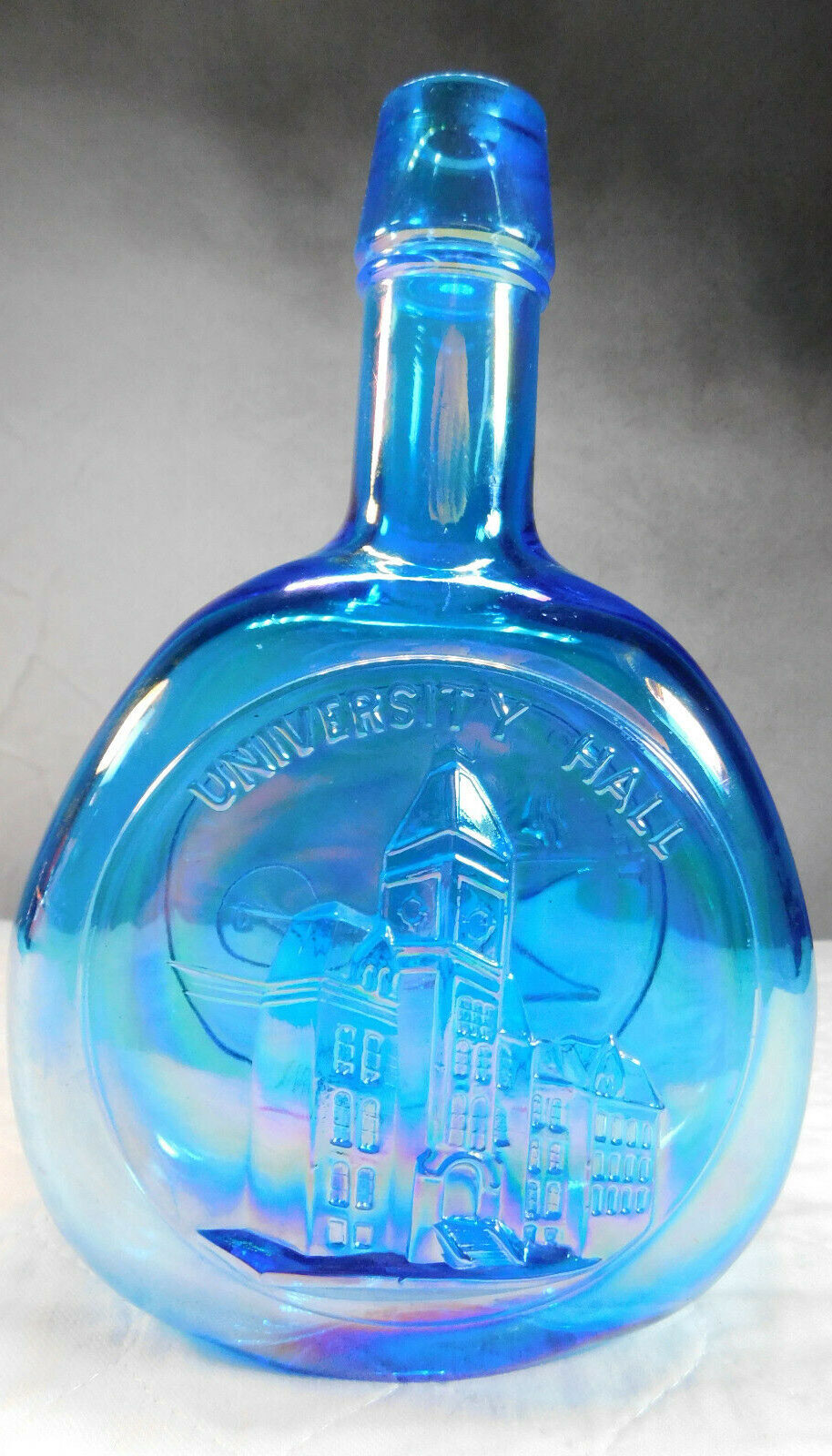 The above bottle was made for the Indiana State University in 1970 to celebrate its 150th anniversary. The front of the bottle reads "Indiana University 150 1970." And the back of the bottle has a university building." |