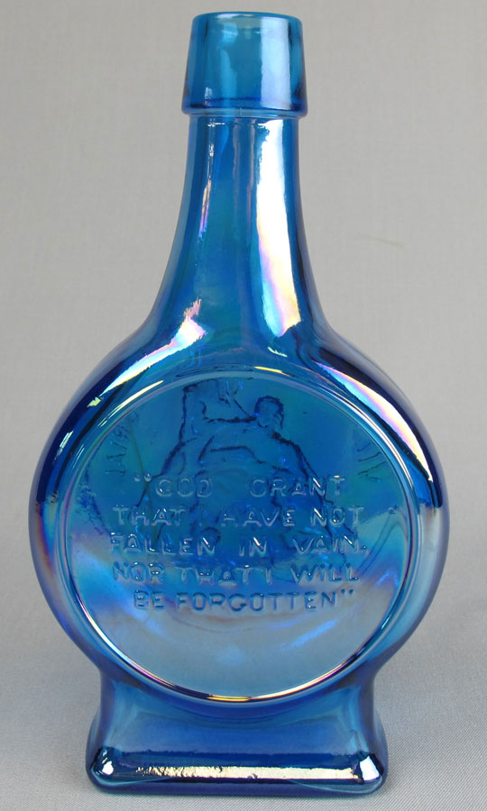 The above bottle was made as a commemorative by the Millville NJ Jaycees. The front of the bottle reads "Vietnam Memorial". The back of the bottle reads "God grant that I have not fallen in vain nor that I will be forgotten". The bottom of the bottle reads "Millville New Jersey Jaycees". |