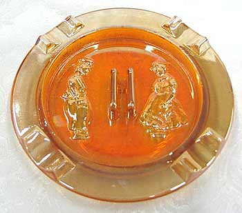 ![]() Dutch Boy and Girl - Similar to other depression era ashtrays. This one has the images of a boy and girl in presumably dutch dress. Only found in marigold. |