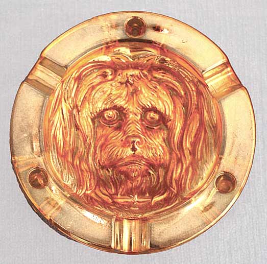 ![]() Dog Face - Once in the collection of Bob and Geneva Leonard, this unusual ashtray is found only in marigold. |