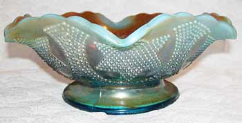 Thought to be made in only marigold, here's "Beaded Star and Swag" in aqua opalescent. |