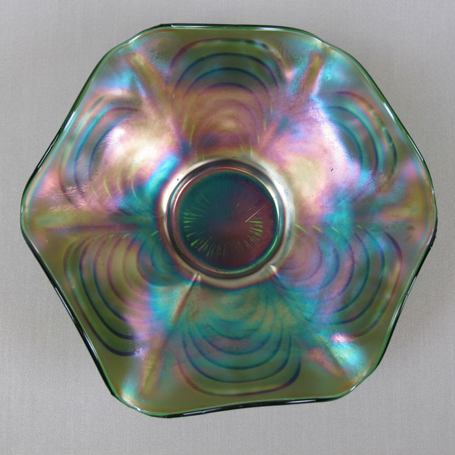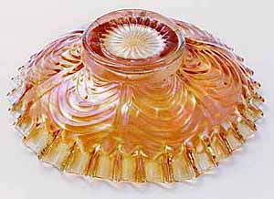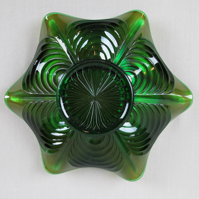Thus in the vase form, the pattern is referred to as Drapery while in the bowl form, it is called Cut Arcs. Boggy Bayou has a more intricate pattern in its base as compared to the Cut Arcs base which has a standard rayed star in it. |