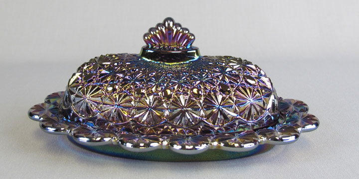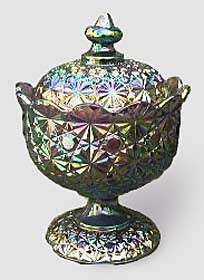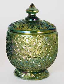 Daisy and Button was a traditional pattern in pressed glass, although little of it was made in Carnival during the classic era. However, the pattern has found its way into many contemporary pieces. | |||