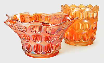These are the Diamond an Rib jardinieres. The four of these shown have 5 1/4-inch bases--the same as the funeral vases. In fact, the funeral vases were swung from a piece much like these as this is how they came out of the mold.
