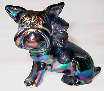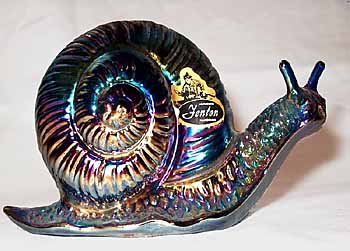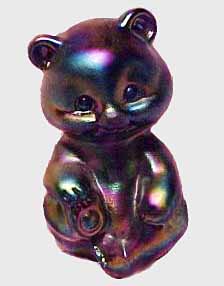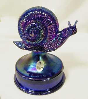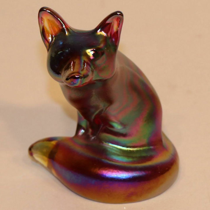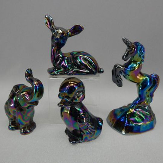 These tiny figures are always in demand. Fenton made a variety of small animal figures in a number of treatments as well as Carnival. Probably dates from early 1980s. Shown are cats, bears, dogs, foxes, and snails as well as others.