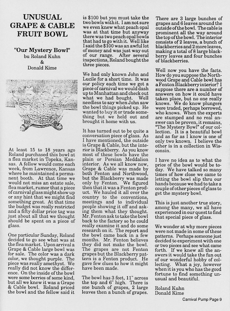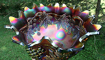 |   |  . Several years ago Gary Heavin sent Dave Doty this photo of his Grape and Cable fruit bowl with a Blackberry interior. He pointed out that there are three known and this is the amethyst; the other two are blue.