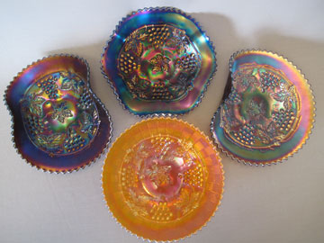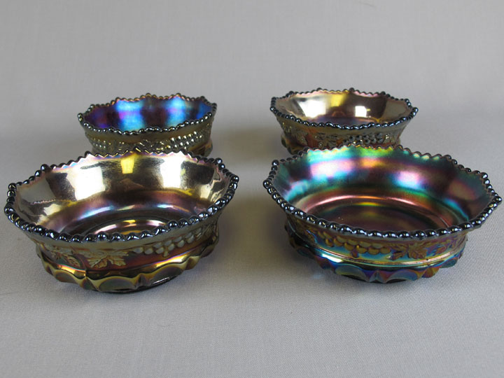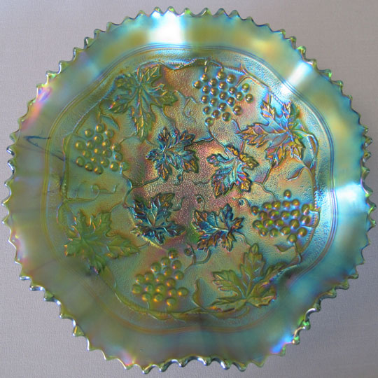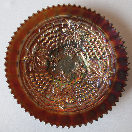 Northwood made vast amounts of Grape and Cable in many different shapes and sizes and bowls and plates are no different. This page lists and photos the various shapes, sizes and variations in bowls and plates Northwood made in Grape and Cable starting with the smallest and going to the largest. | ||