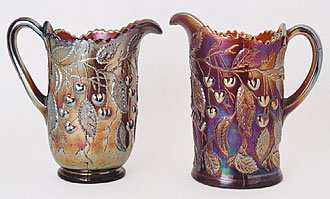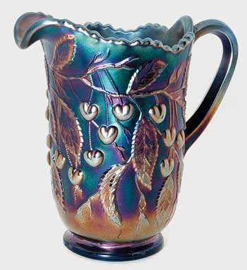 There are only two known Millersburg's Hanging Cherries milk pitchers in blue. One is shown on the far right. |