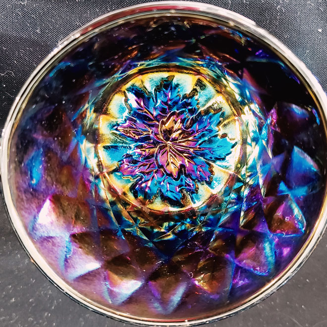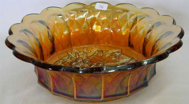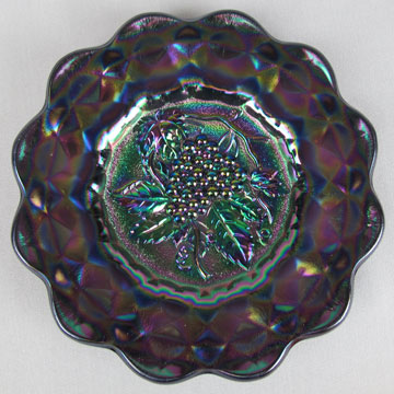 Dugan made a pattern also called Heavy Grape that has a leaf in the center and does not have the quilting effect. Lenox/Imperial, Fenton and Smith have reproduced this pattern. |