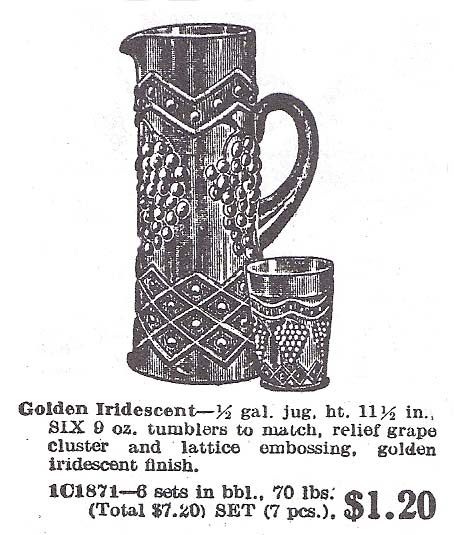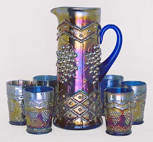 . Found only in water set pieces (with a tankard-style pitcher). They are found in blue and marigold and only occasionally in white.