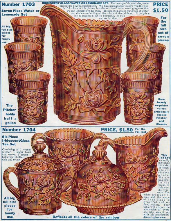The ad to the right for a water set and a table set appearred in a Lee Manufacturing catalog in 1915. |