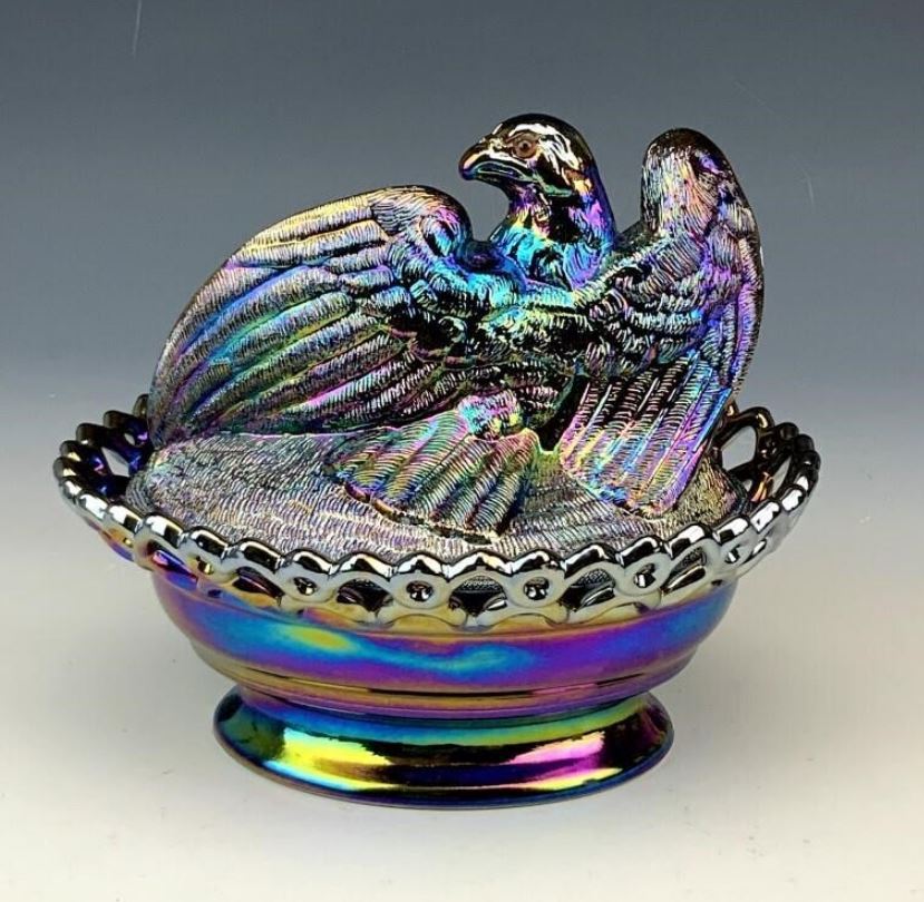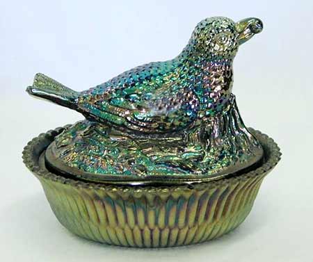 ![]() Robin on Nest, Westmoreland - These covered bowls were made by Westmoreland and are found in a variety of colors. The example shown here is blue. |