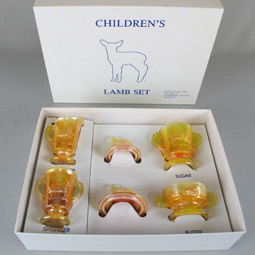 ![]() Lamb Mini Set, Imperial and Boyd - This miniature was first made by Imperial. Boyd added a covered sugar and issued it in new colors and in a collector's box. |