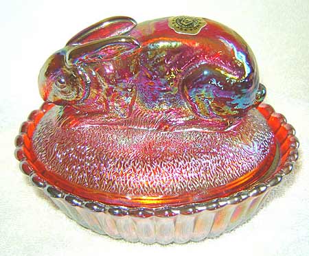 ![]() Rabbit, Westmoreland - This covered bowl is 4 inches tall and appears to be red. There also appears to be a Westmoreland sticker on the back of the rabbit. Also by Summit. |