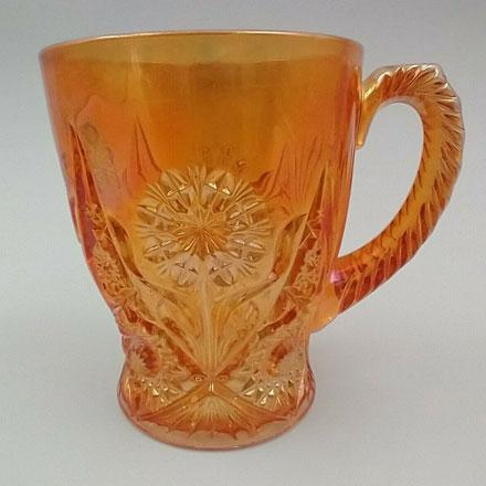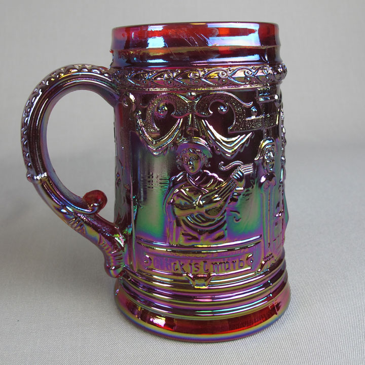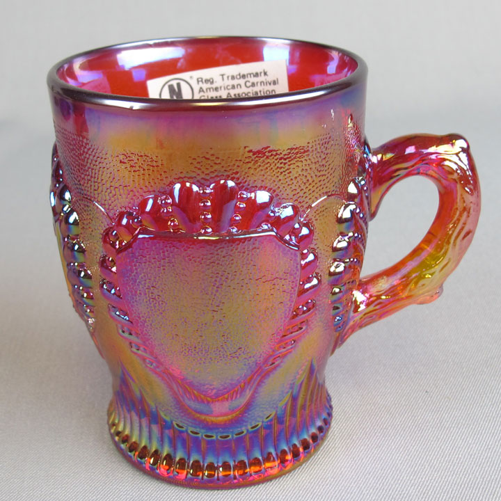 ![]() Robin, Imperial - Mugs were made in red and pink. In 1967, the red mug was used as the American Carnival Glass Association's first souvenir. |