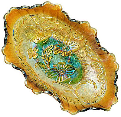 pickle dishes or with Fenton's reproduction. These are found in various colors.