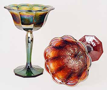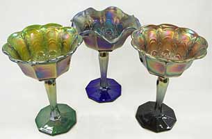 The compotes above are the 9-inch jelly compotes. These larger compotes have an 8 sided base. The smaller compotes, shown to the right, have a round base and are about 6 inches tall. | ![]() |