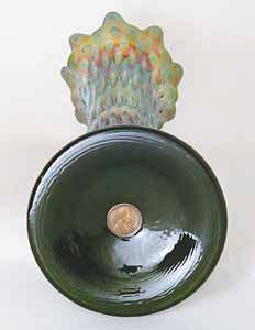 To the right is a vase with a 1909 penny molded into the base. The glass worker must have dropped the penny into the mold before dropping in the molten glass. |
