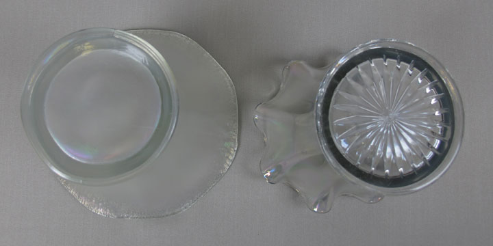 Imperial Glass gave a mold number to each base size: 692 is 2 1/2 inch bases, 693 is 3 1/2 inch bases, 694 is 4 1/2 inch bases and 695 is 5 1/2 inch bases. Only pieces sold under these four Imperial mold numbers are true Smooth Panels pieces. Each base size can have multiple heights due to the amount (if any) the vase was "swung". |