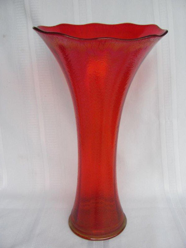 Vases with a base size of 5 1/2 inches are referred to as "Funeral Vases". The photo, at left, shows a Red Smooth Panels Funeral Vase.
