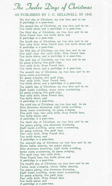 1978 - "Nine Drummers Drumming" in Pink carnival | 1979 - "Ten Pipers Piping" in Horizon Blue Carnival (ice blue) | 1980 - "Eleven Ladies Dancing" in Meadow Green Carnival (ice green) | 1981 - "Twelve Lords A-Leaping" in Red Carnival |
